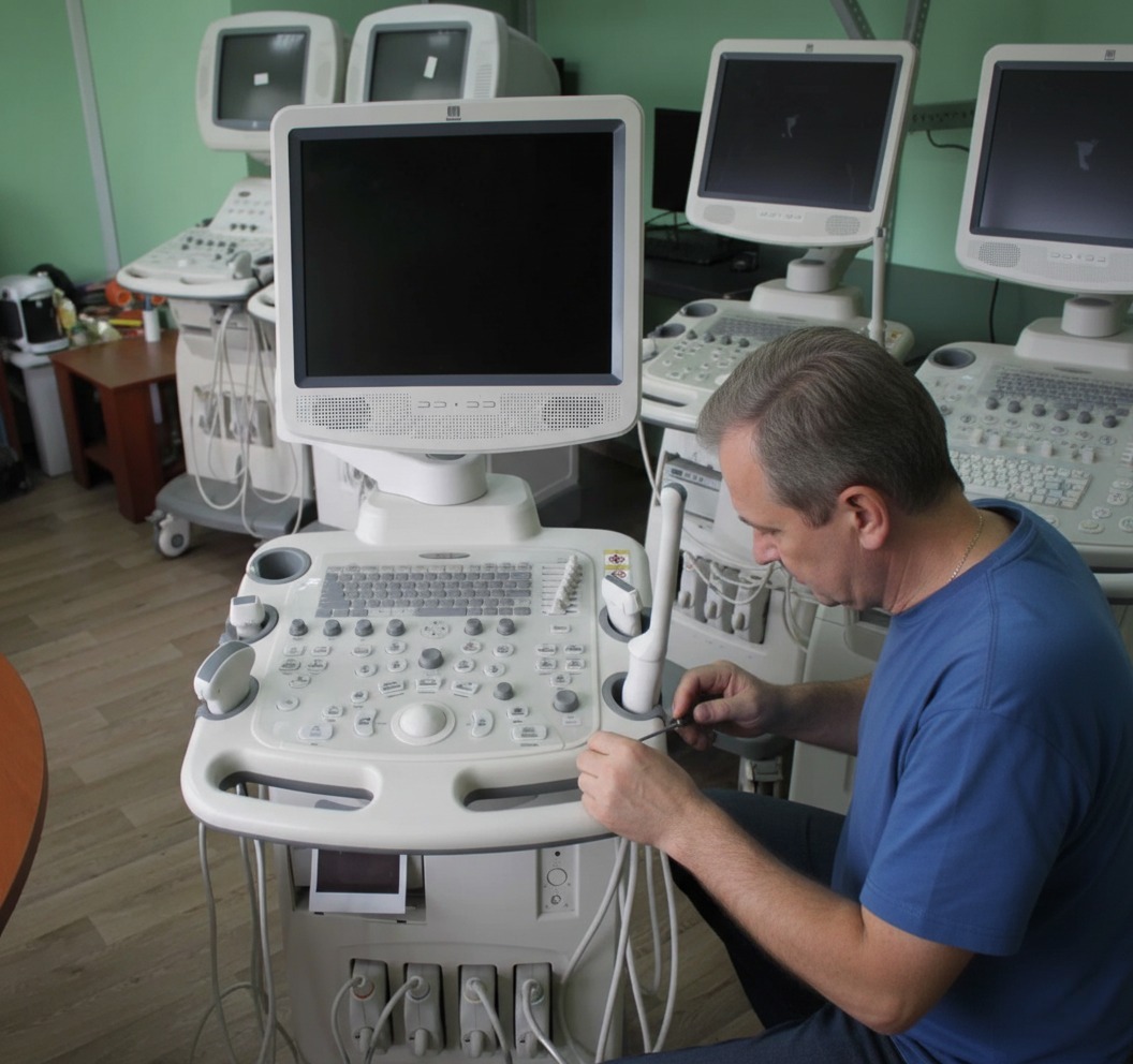 Ведущий сервисный специалист УЗИ. Проводит профилактику, обновление ПО и контроль качества изображения в клиниках и диагностических центрах