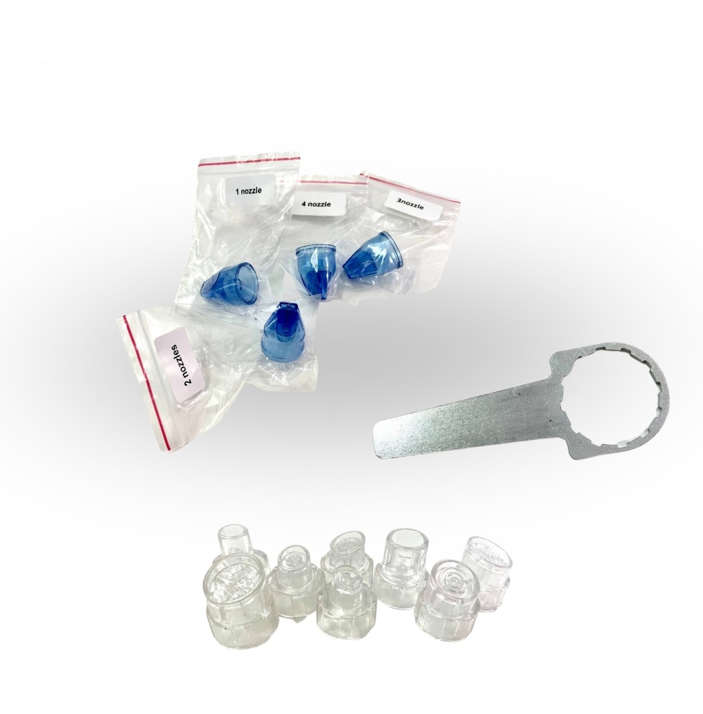 - Манипула газожидкостного пилинга оснащена четырьмя различными насадками с 1, 2, 3 и 4 соплами, обеспечивающими гибкость в применении.