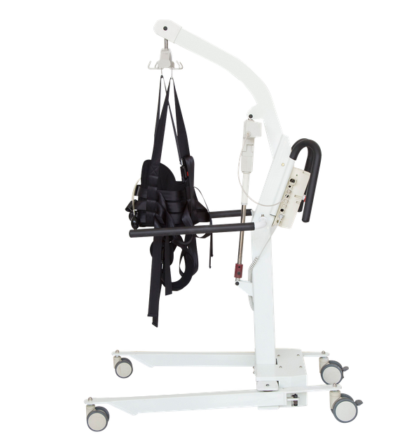 Подъем и опускание пациента осуществляется плавно и бесшумно с помощью электропривода, активируемого нажатием кнопки на пульте управления. Производителем установлен допустимый вес пациента до 250 килограммов, что обеспечивает возможность обслуживания людей различных весовых категорий. Электропривод подъемника реализован на базе двух двигателей, получающих питание от сети. Аппарат также оборудован емким аккумулятором, обеспечивающим длительную автономную работу обоих двигателей. Это позволяет заряжать аккумулятор в ночное время и использовать подъемник бесперебойно в течение дня без необходимости постоянного подключения к электросети.
