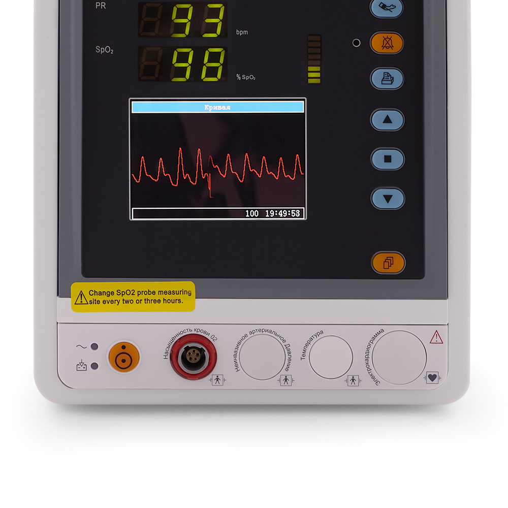- Гибкость настройки для различных категорий пациентов: Монитор позволяет легко выбрать одну из трех предустановленных категорий пациентов: новорожденный, ребенок или взрослый, обеспечивая оптимальную точность измерений для каждой группы.