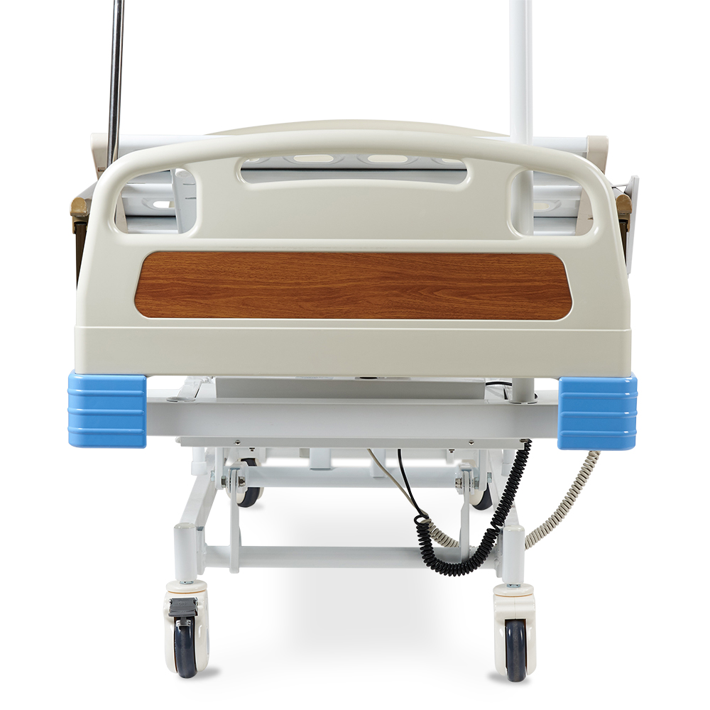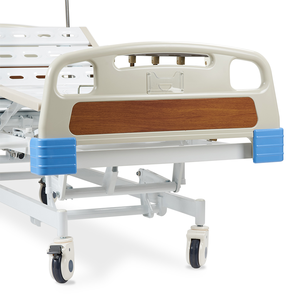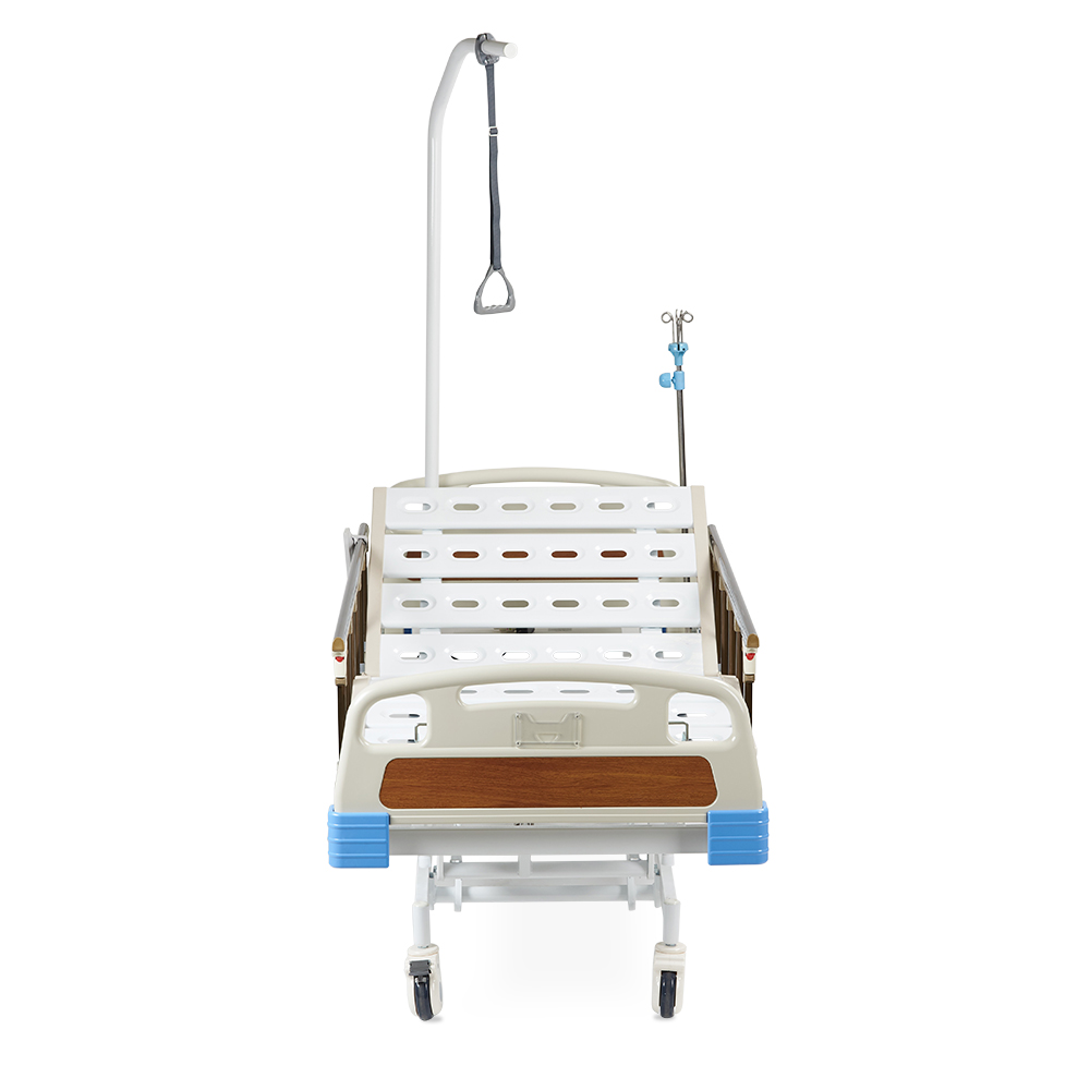 Колеса кровати, оснащенные стальными несущими частями, обеспечивают легкое перемещение, а два индивидуальных тормоза гарантируют надежную фиксацию. Для обеспечения безопасности пациента кровать укомплектована двумя боковыми ограждениями (рейлингами). Конструкция рамы предусматривает отверстия для установки вспомогательного оборудования, такого как стойки для внутривенных инъекций и устройства для подтягивания.