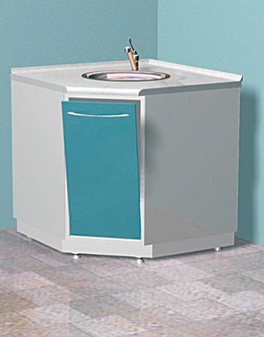 Основой конструкции является прочный металлический каркас с полимерным покрытием, гарантирующий долговечность и устойчивость к внешним воздействиям. Оснащена накладной мойкой глубиной 150 мм и локтевым смесителем, что соответствует санитарным нормам и обеспечивает гигиеничность использования.