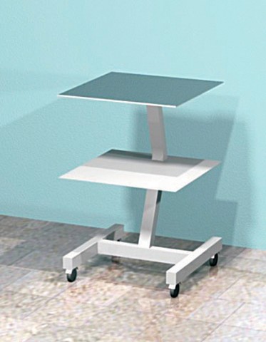 Мобильность столика обеспечивается четырьмя колесами диаметром 50 мм, два из которых оснащены тормозом. Это позволяет легко перемещать столик между кабинетами или в пределах одного помещения, а также надежно фиксировать его в нужном положении для безопасной работы.