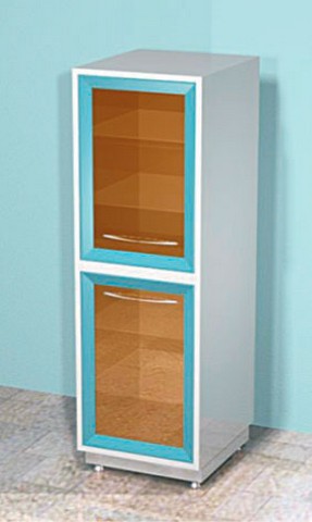 - Верхняя секция оснащена распашной дверью с прозрачной стеклянной рамкой и двумя полками из стекла, что позволяет удобно просматривать содержимое и быстро находить нужные предметы.