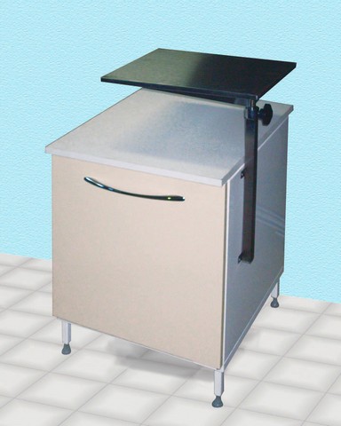 Особое внимание уделено функциональности: модель оснащена поворотным столиком из нержавеющей стали с углом поворота 90 градусов. Высота столика легко регулируется в диапазоне 700-1000 мм и надежно фиксируется винтовым зажимом, обеспечивая комфорт при работе.