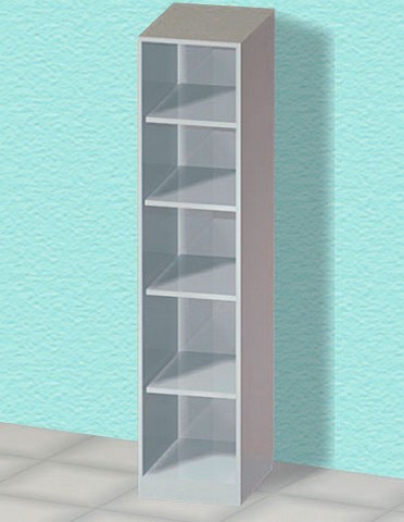 Прочная металлическая конструкция шкафа покрыта износостойким полимером, что обеспечивает долговечность и легкость в уходе, соответствующие строгим санитарным требованиям. Внутри шкафа расположены четыре вместительные полки, позволяющие эффективно организовать хранение различных предметов.