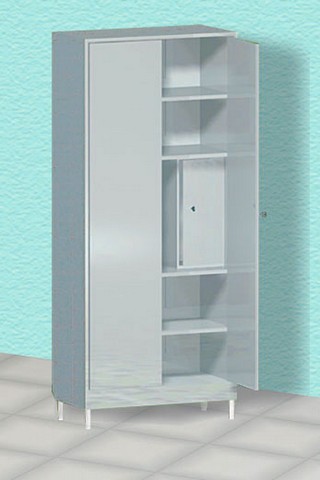 Основой конструкции является прочный металлический каркас, обработанный полимерным покрытием, что гарантирует долговечность и устойчивость к внешним воздействиям, а также облегчает процесс дезинфекции. Шкаф оснащен двумя распашными дверцами, каждая из которых имеет надежный замок, обеспечивающий конфиденциальность и сохранность содержимого. Внутри шкафа расположены четыре вместительные полки, позволяющие удобно систематизировать различные группы предметов. Дополнительным преимуществом является наличие встроенного сейфа, предназначенного для хранения особо ценных или строго учетных препаратов и документов, что повышает уровень безопасности.