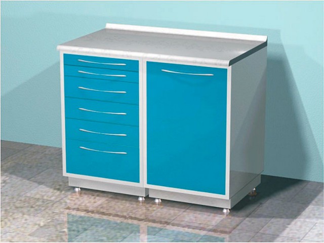 Функциональность стола значительно расширена благодаря двум тумбам. Одна тумба оснащена шестью выдвижными ящиками, предоставляя достаточно места для организации мелкого инвентаря и расходных материалов. Вторая тумба имеет распашную дверь и две внутренние полки, что удобно для хранения более крупных предметов. Габаритные размеры стола составляют 1000х600х900 мм (ШхГхВ), что позволяет оптимально интегрировать его в рабочее пространство.