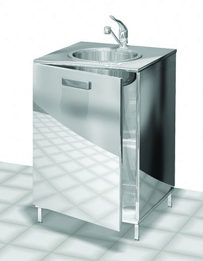 Функциональность тумбы расширена благодаря наличию одной распашной двери, за которой скрывается продуманное пространство для хранения. Интегрированный смеситель и накладная мойка глубиной 150 мм делают эту тумбу идеальным решением для процедурных кабинетов или лабораторий, где требуется быстрый доступ к воде. Опоры в виде ножек высотой 100 мм оснащены механизмом регулировки высоты, что позволяет легко адаптировать тумбу под индивидуальные нужды персонала и особенности помещения, обеспечивая идеальную эргономику рабочего пространства.