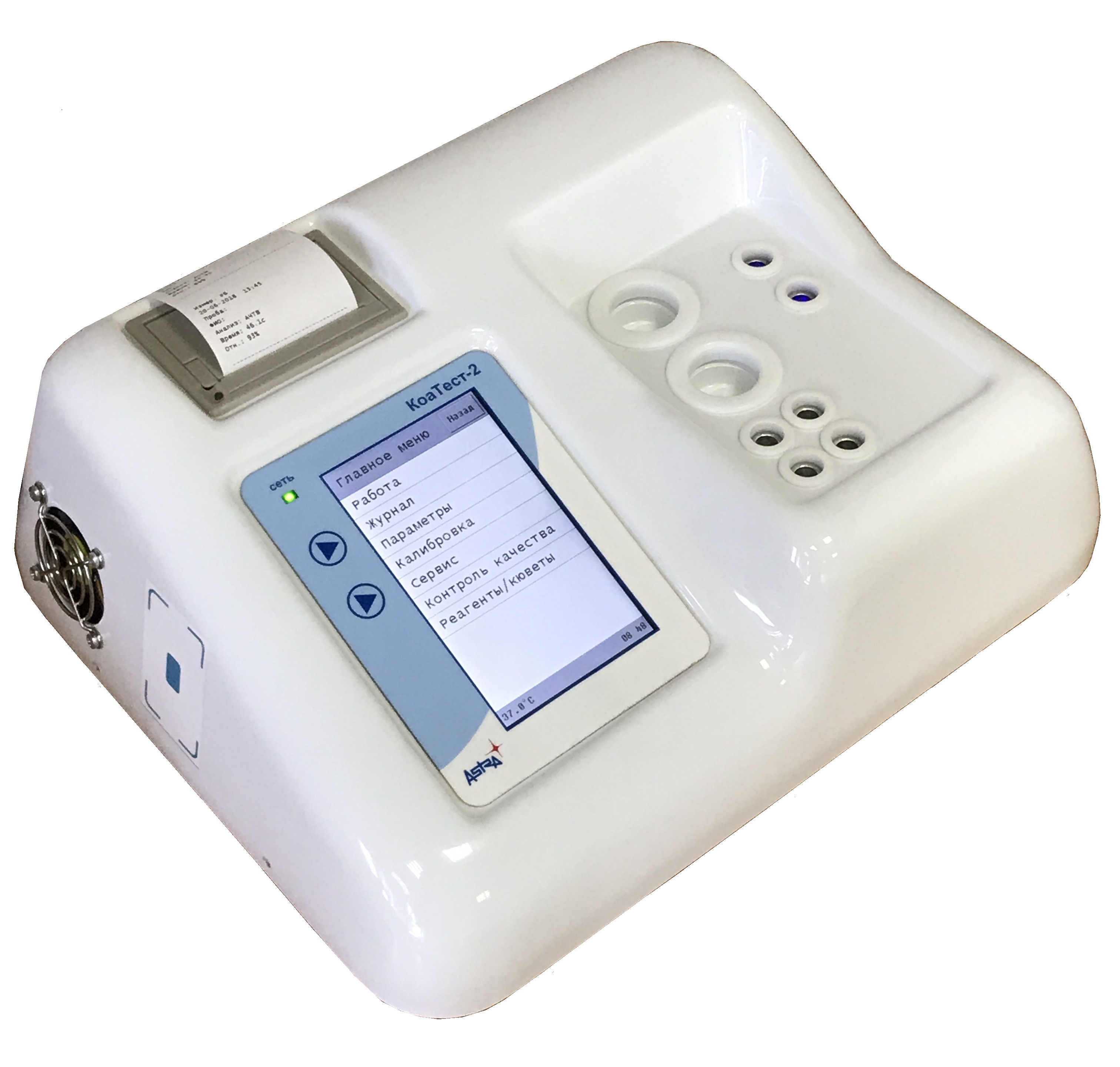 Устройство обладает двумя измерительными каналами, ЖК-индикатором с тачскрином и двумя термостатами: для предварительного подогрева кювет и для реагентов (до 37°С). Автоматическое подмешивание тромбопластина упрощает рабочий процесс. Журнал измерений способен хранить более 70 тысяч записей, а все настройки и калибровочные параметры сохраняются в энергонезависимой памяти. Встроенный принтер и порт USB обеспечивают удобство работы и интеграцию с лабораторными информационными системами.
