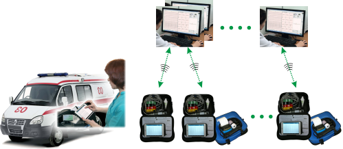 - Мобильные компьютерные электрокардиографы в автомобилях скорой помощи.