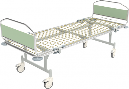 Основание ложа обладает фиксированной высотой, обеспечивая стабильность и удобство использования. Ножки кровати оснащены прочными колесами диаметром 125 мм, каждое из которых оборудовано надежным тормозом, что позволяет легко перемещать кровать и фиксировать ее в нужном положении.