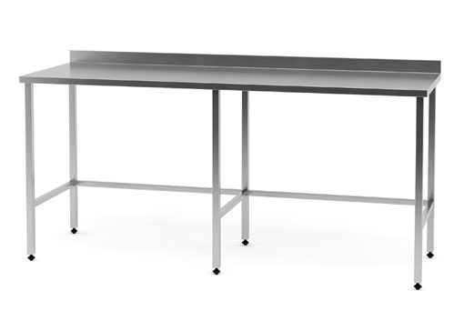 Конструкция столов полностью выполнена из высококачественной нержавеющей стали марки AISI 304 (08Х18Н10), что гарантирует исключительную устойчивость к коррозии и агрессивным средам. Ножки столов изготовлены из полированной квадратной трубы из нержавеющей стали размером 40x40 мм, оснащены регулируемыми пластиковыми опорами для компенсации неровностей пола и усилены обвязкой по трем сторонам, обеспечивая максимальную стабильность. В зависимости от длины рабочей поверхности и предполагаемой нагрузки стол может быть оборудован четырьмя или шестью ножками.