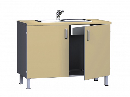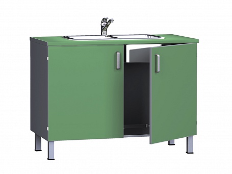 - БТ-ТМ-120: Медицинская тумба с двумя распашными дверками, двойной мойкой и смесителем. Опоры регулируются по высоте. Габаритные размеры: 1210х600х900 мм.