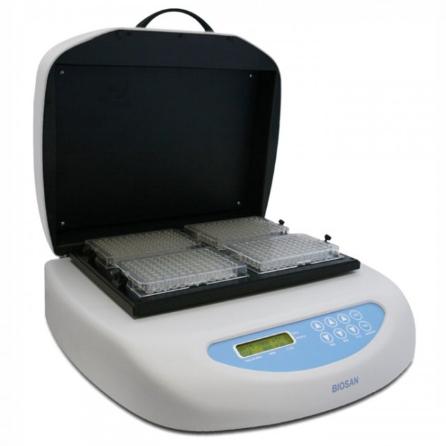 - Двусторонний нагрев планшет: Запатентованная технология BioSan обеспечивает равномерное распределение температуры в каждой лунке планшета, гарантируя высокую точность и воспроизводимость результатов, что критически важно, например, для реакции ИФА.