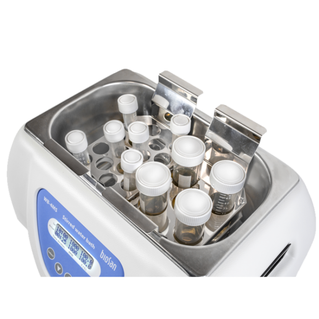 Водяная баня-термостат BioSan WB-4MS является незаменимым инструментом для проведения широкого спектра исследований в химической, фармакологической, медицинской и биологической сферах. Это устройство предназначено для прецизионного поддержания заданной температуры в диапазоне от комнатной до 100°С, что критически важно для точности и воспроизводимости экспериментов.