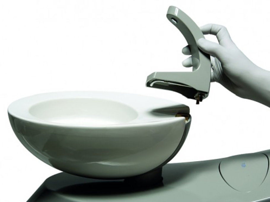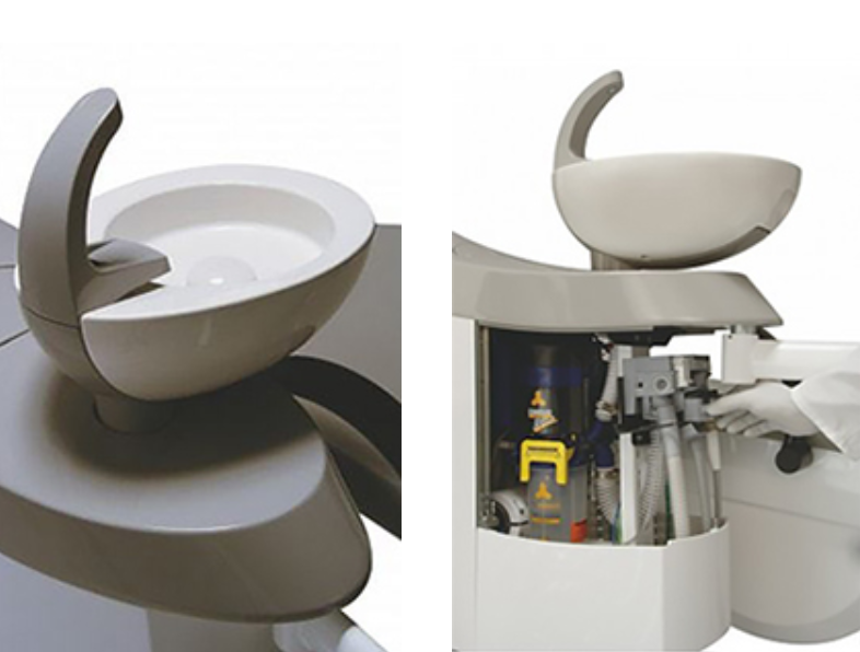 Поворотная (по направлению к пациенту), съемная фарфоровая чаша плевательницы, стерилизуемая в автоклаве.