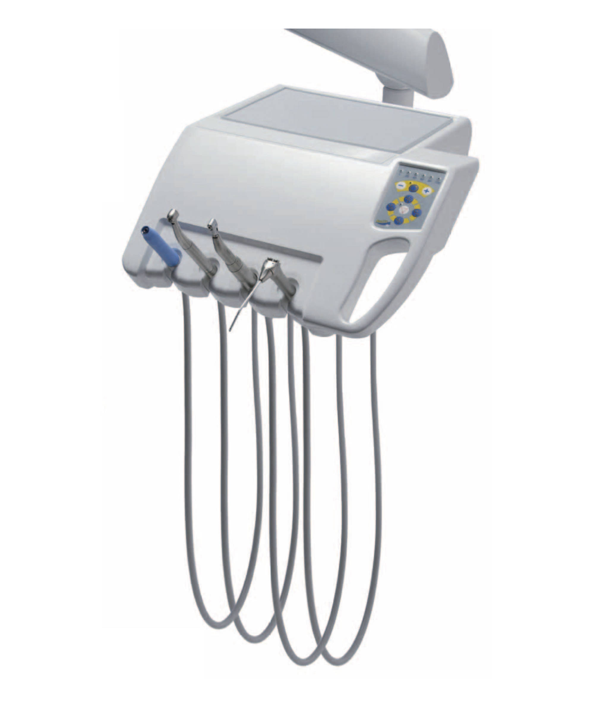 Основной рабочий элемент установки — столик врача, расположенный на пантографическом плече. Он оснащён 4 инструментами с нижней подачей шлангов, что минимизирует запутывание и облегчает доступ. Для максимальной гигиены и удобства пациента предусмотрен поворотный блок плевательницы с интегрированным вакуумным слюноотсосом и пылесосом.