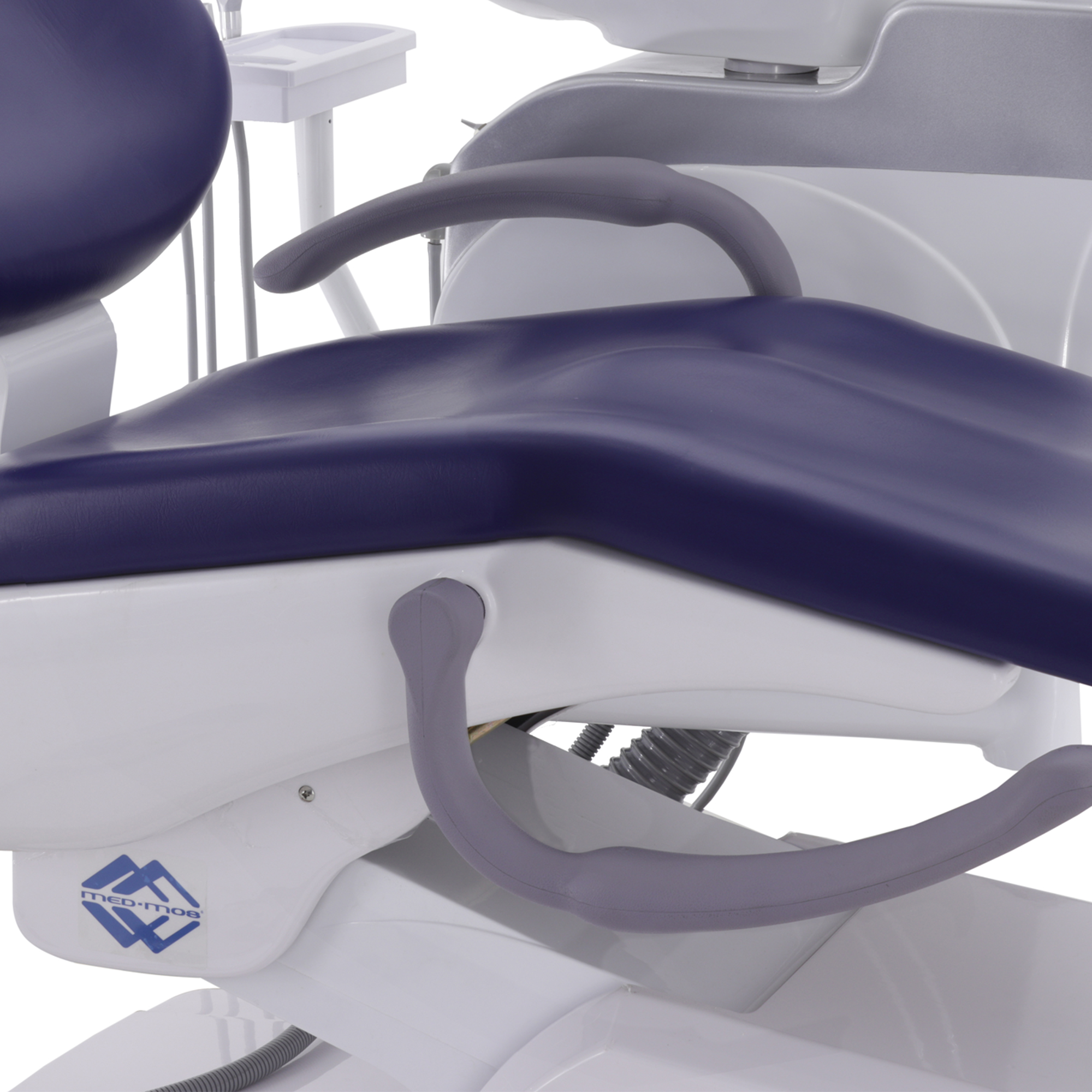 Рабочий блок врача на пантографическом кронштейне с пневматическим тормозом обеспечивает точное и легкое позиционирование. Система с нижней подачей инструментов, оснащенная пятью или шестью портами и пневматическими датчиками, гарантирует мгновенный доступ к необходимому инструментарию. Если же вы предпочитаете верхнюю подачу, держатели шлангов на столике надежно фиксируют инструменты, повышая удобство и эффективность вашей работы.