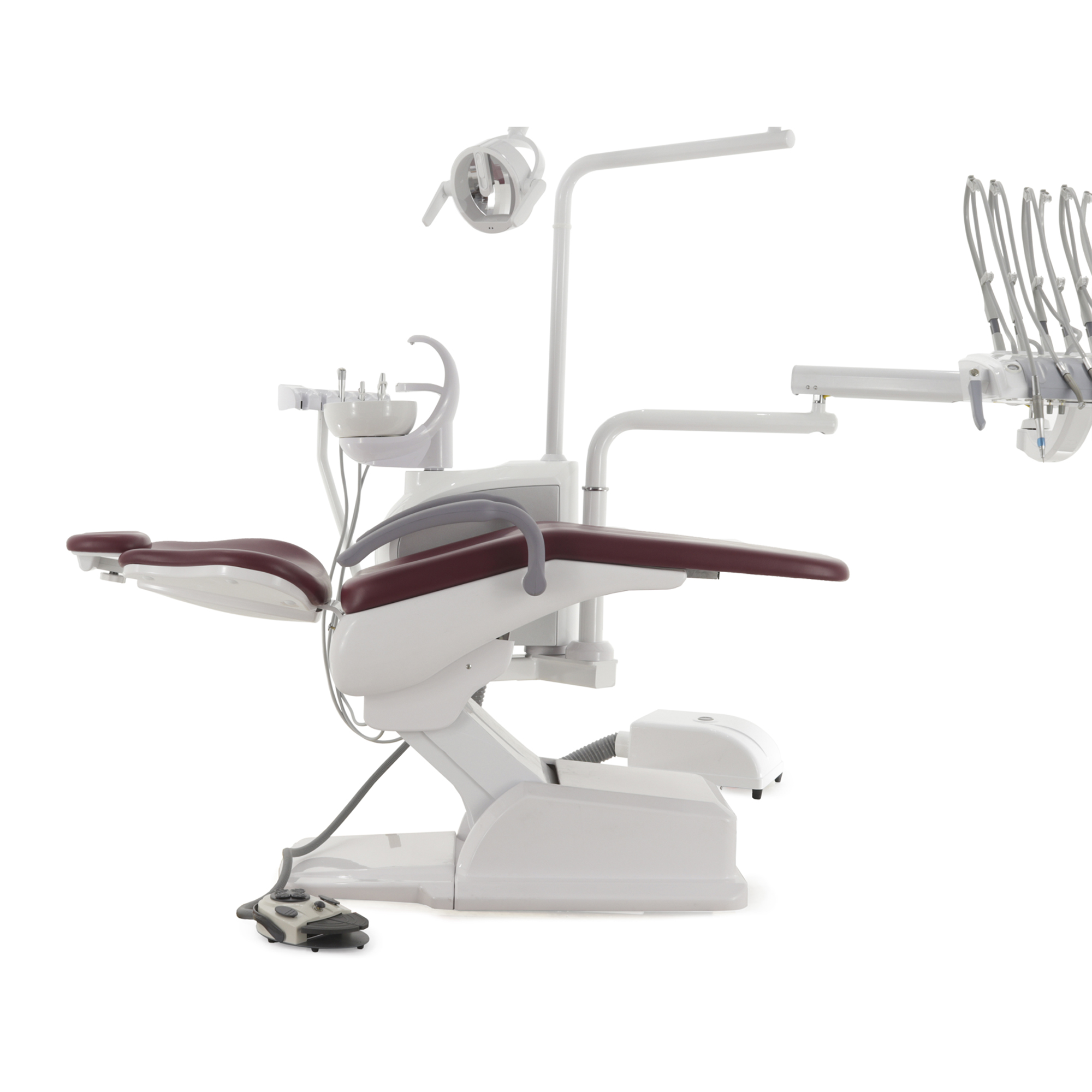 Интегрированный блок врача, закрепленный на пантографическом плече, оснащен пневматическим тормозом, что обеспечивает его легкое и точное позиционирование. Система нижней подачи на 5 или 6 инструментов с пневматическими датчиками положения гарантирует мгновенный доступ к необходимому инструментарию. Уникальная фиксация шлангов на столике с верхней подачей значительно повышает удобство работы, позволяя врачу сосредоточиться на процедуре без отвлечений.