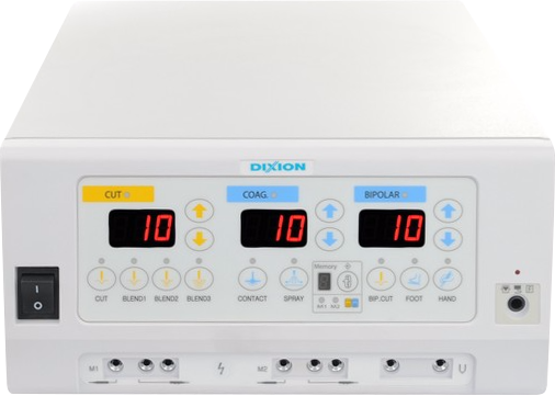 Рабочие режимы генератора включают 4 режима монополярного разреза, режим биполярного разреза и биполярной коагуляции, контактную коагуляцию и спрей коагуляцию, предоставляя докторам полный контроль над процессом.