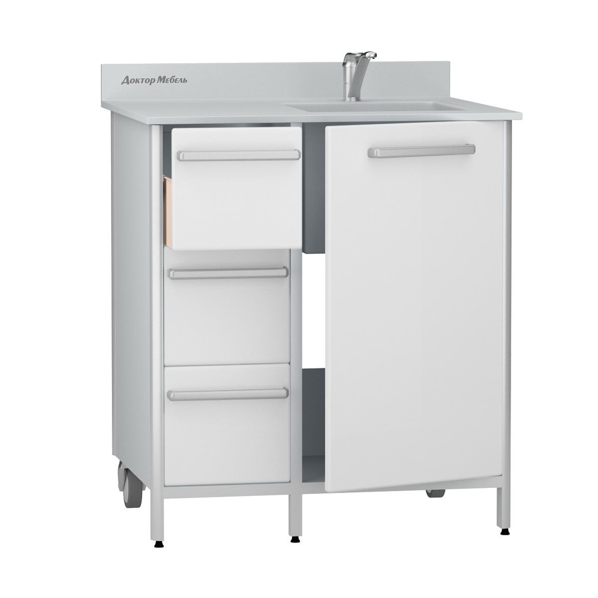 Представляем медицинскую мойку ДМ-1-111-04 от Доктор Мебель – надежное решение для вашего медицинского учреждения. Эта мойка, выполненная на основе прочного алюминиевого каркаса с полипропиленовым наполнением, идеально подходит для условий с повышенными требованиями к дезинфекции. Ее инновационная конструкция с интегрированной столешницей из литьевого мрамора и водостойкими панелями из трехслойного полипропилена гарантирует долговечность и гигиеничность, обеспечивая комфорт и безопасность в ежедневной практике.