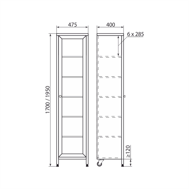 - Колесные опоры сзади: Специальные синтетические колеса не оставляют следов на напольных покрытиях и упрощают перемещение шкафа, обеспечивая его мобильность.