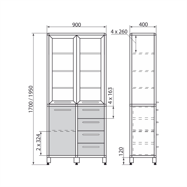 Обратите внимание, что модели высотой 1700 мм отличаются от моделей высотой 1950 мм количеством внутренних полок.