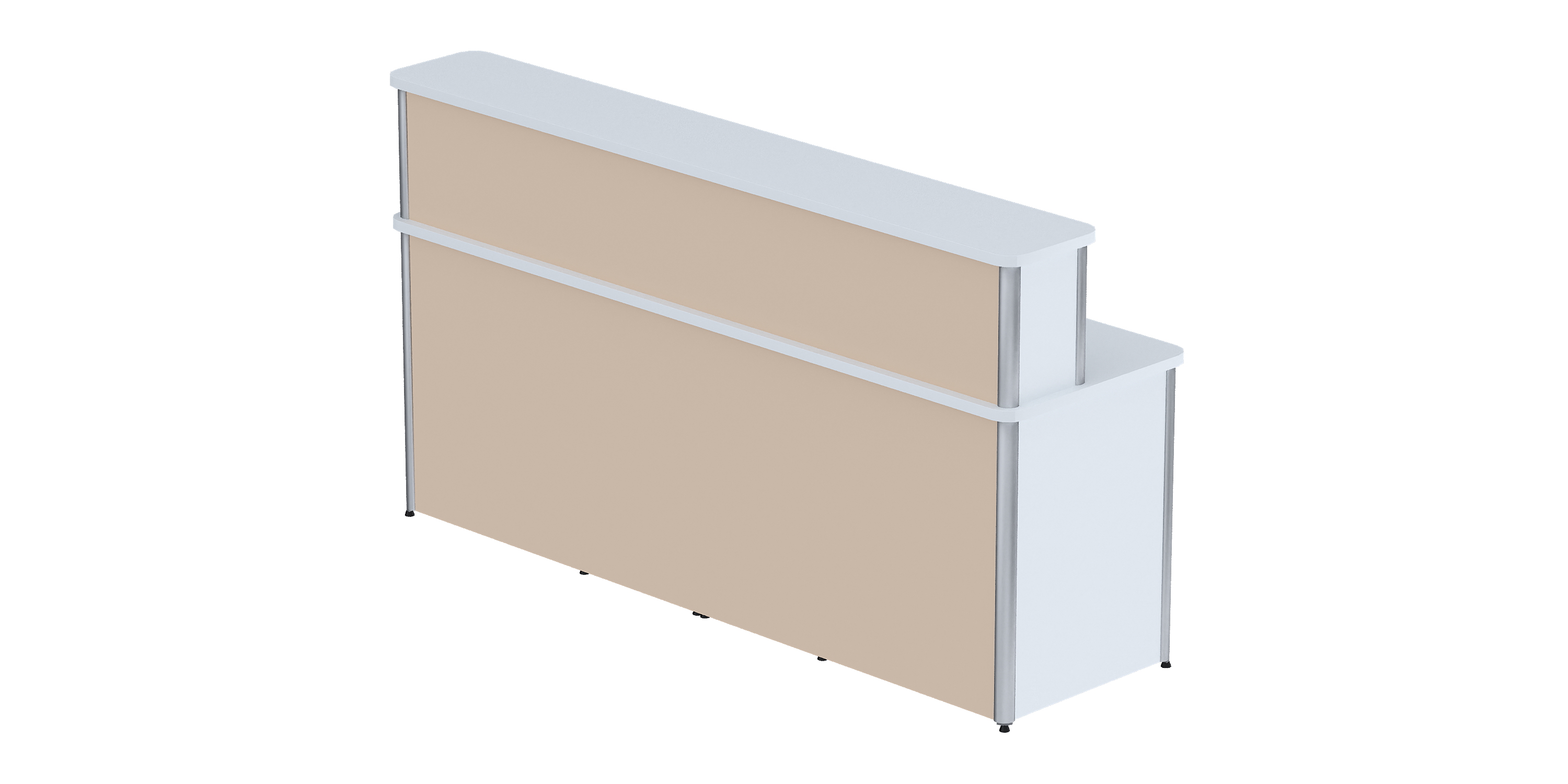 Основой конструкции является вертикальный несущий алюминиевый профиль, дополненный панелями из ЛДСП. Особая инженерная мысль воплощена в колесных опорах, расположенных сзади, что позволяет легко перемещать стол в пределах помещения, обеспечивая максимальную гибкость в организации рабочего пространства.