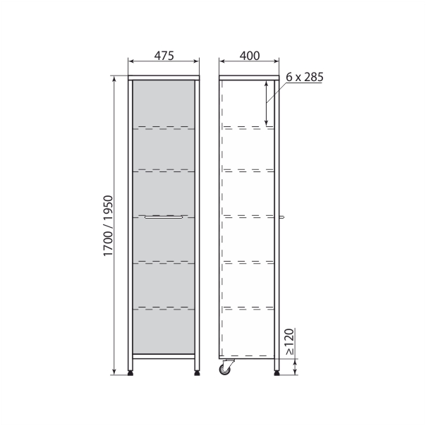 - Высота: доступно две версии – 1700 мм и 1950 мм. Выбор высоты влияет на количество внутренних полок.