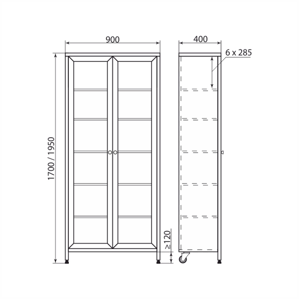 - Высота: 1700 мм или 1950 мм (модели с разной высотой отличаются количеством полок)