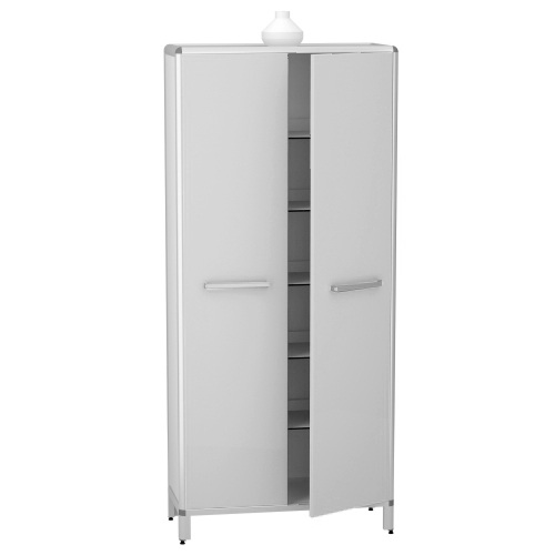 - Панели: Изготовлены из композитного трехслойного полипропилена, гарантирующего 100% водостойкость и высокую химическую устойчивость к агрессивным средам. Это делает шкаф идеальным для помещений с интенсивной дезинфекционной обработкой.
