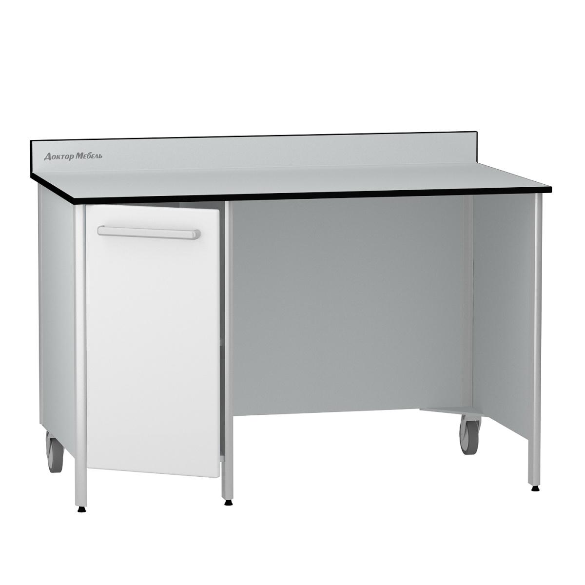 Мебель с алюминиевым каркасом и панелями из ЛДСП. Особая конструкция с задними колесными опорами обеспечивает легкость перемещения. Идеально для кабинетов врачей и административных помещений, сочетая практичность и надежность в медицинских учреждениях.