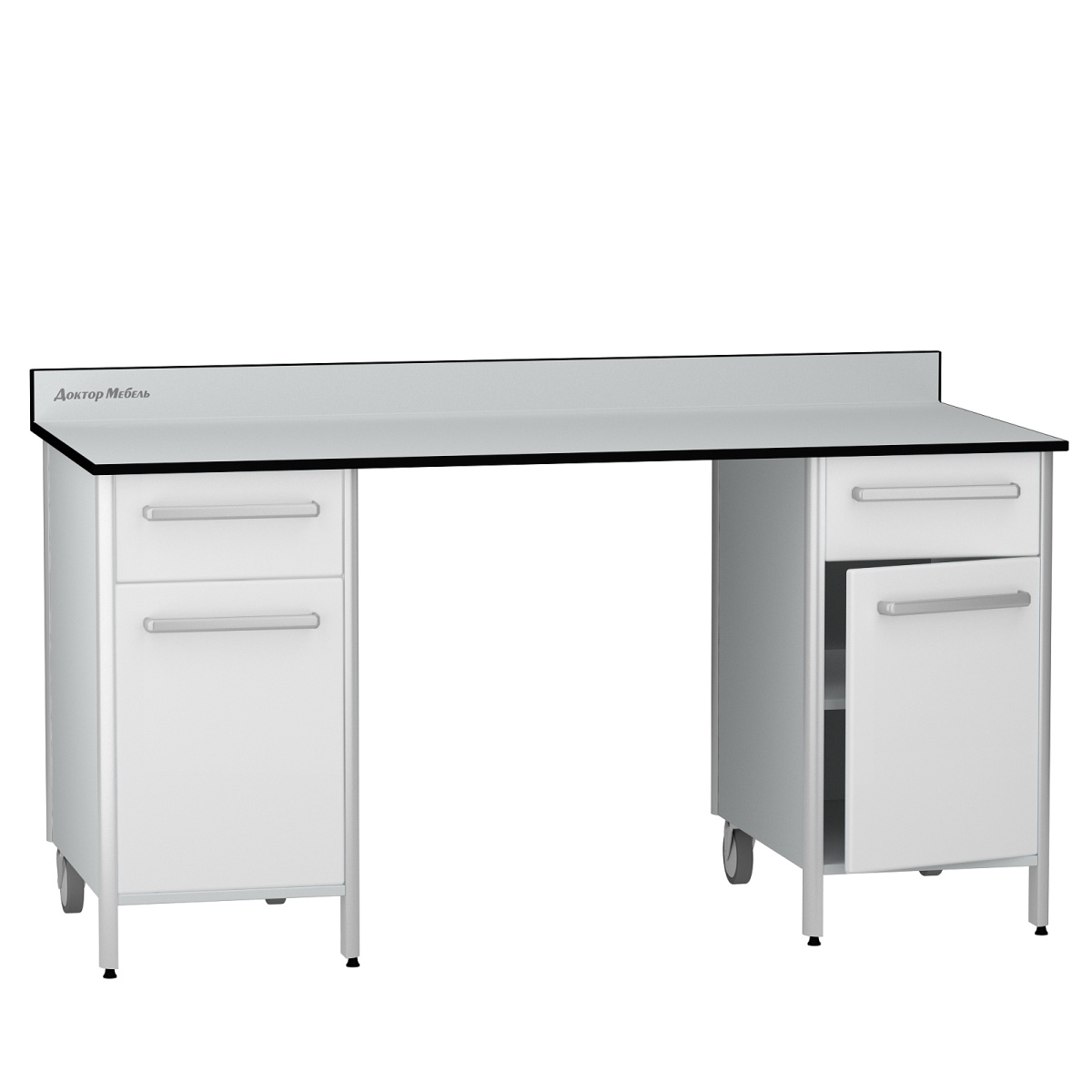 Стол ДМ-6-006-13 (код 3006.25) – это современное и функциональное решение для оснащения врачебных кабинетов и других административных помещений медицинских учреждений. Данная мебель выделяется вертикальной несущей конструкцией из алюминиевого профиля, дополненной панелями из ЛДСП.
