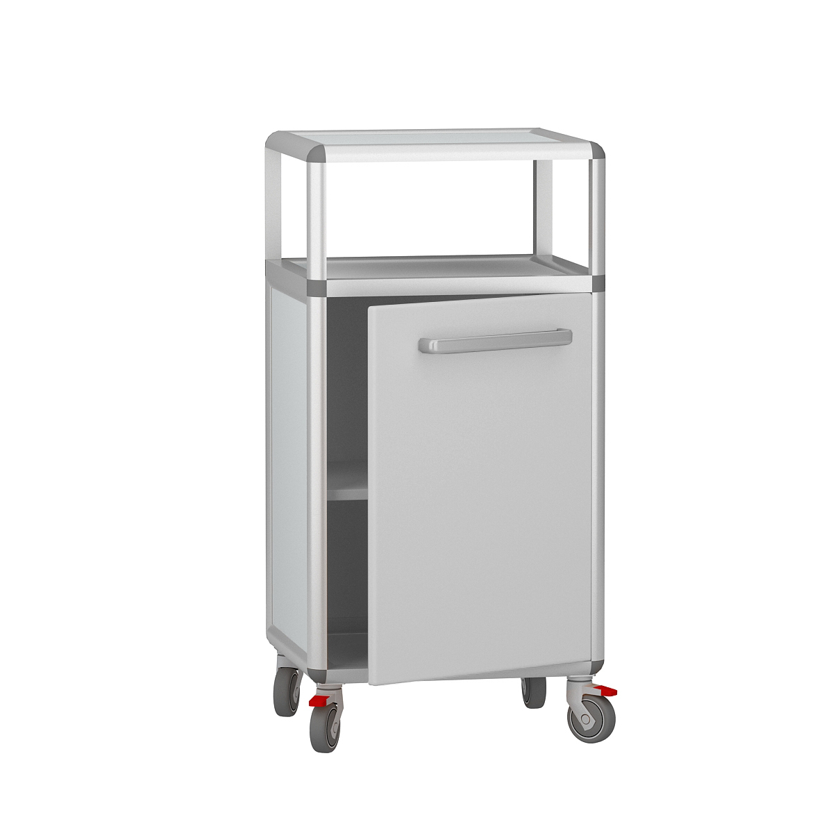 - Колеса: Выполнены из термопластичной резины, которая не оставляет следов на любых типах напольного покрытия, обеспечивая бесшумное и легкое перемещение тумбы по клинике или лаборатории.