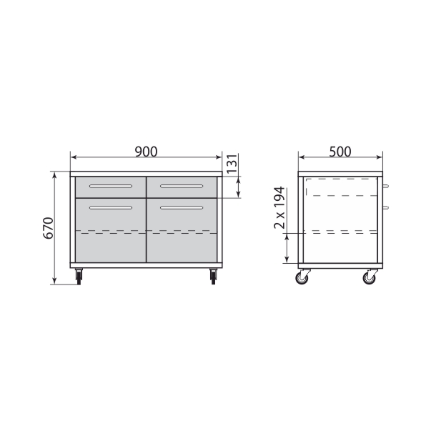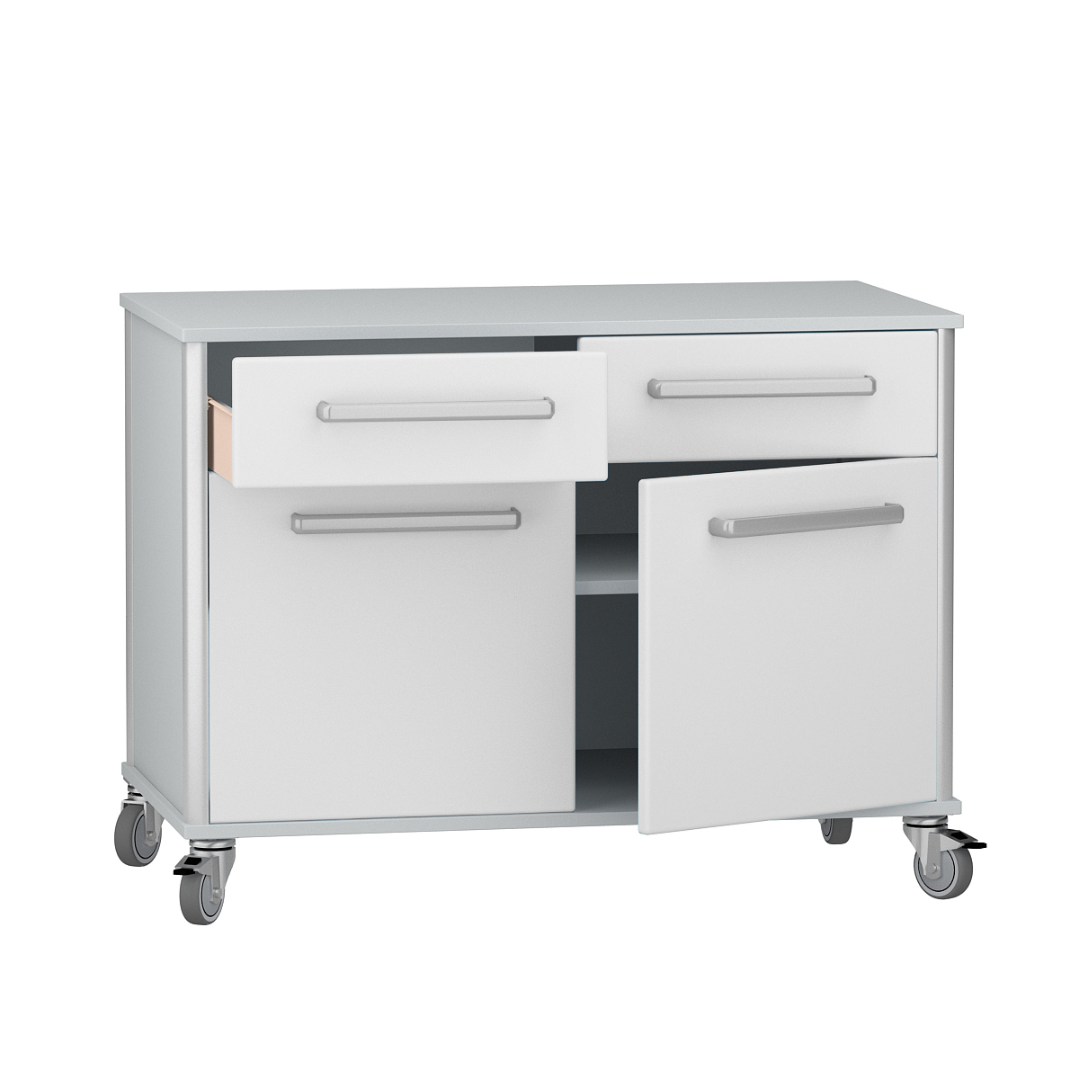- Фасад: Фасад тумбы выполнен из оцинкованной стали с порошковой окраской в виде сэндвич-панели. Интегрированная шумоизоляция и повышенная влагостойкость делают его идеальным для интенсивной эксплуатации в медицинских условиях.