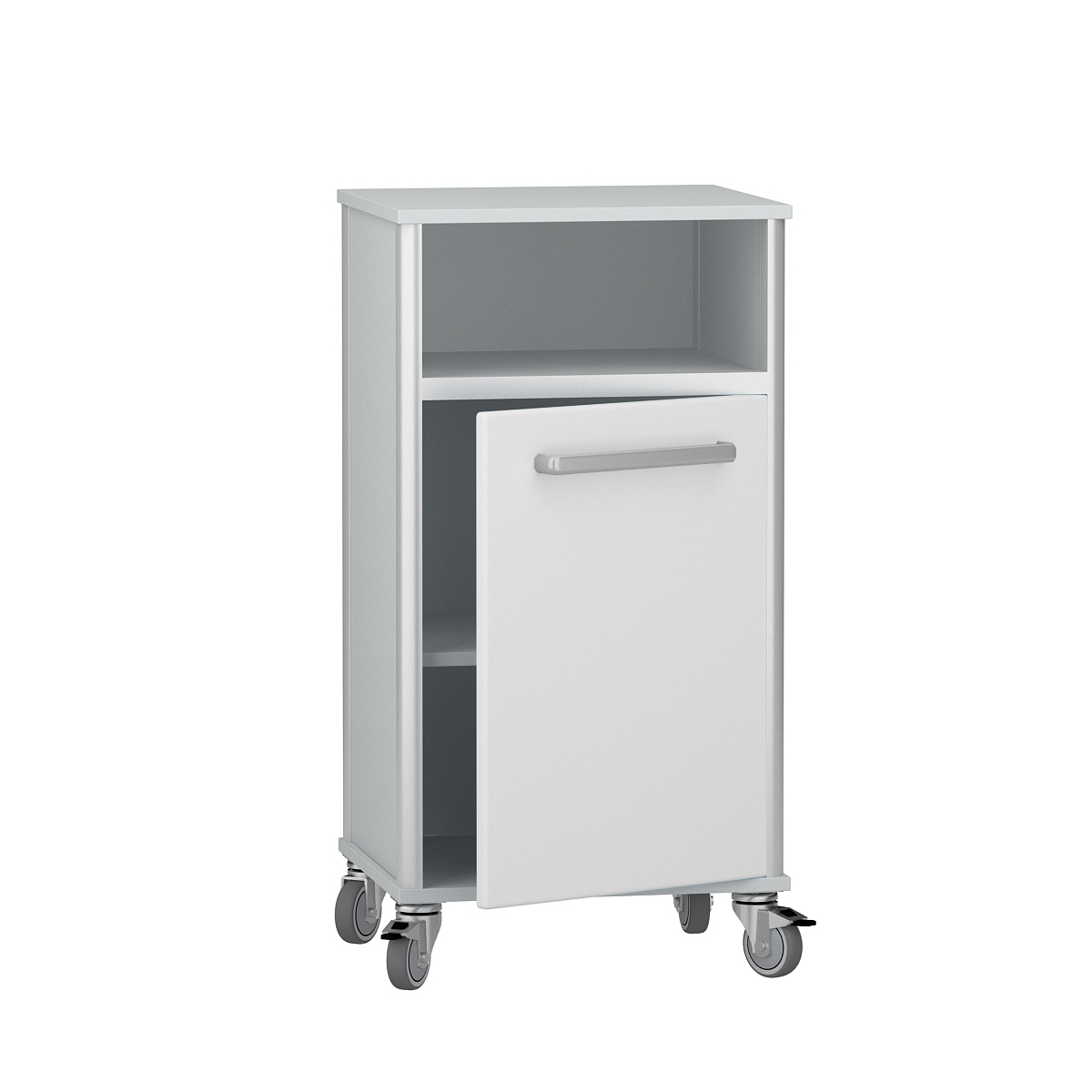 Прикроватная тумба ДМ-6-010-23 (код 3007.13) — это функциональное и эргономичное решение для оснащения медицинских кабинетов и административных зон учреждений. Ее конструкция основана на вертикальном несущем каркасе из высококачественного алюминиевого профиля, дополненном панелями из ЛДСП.
