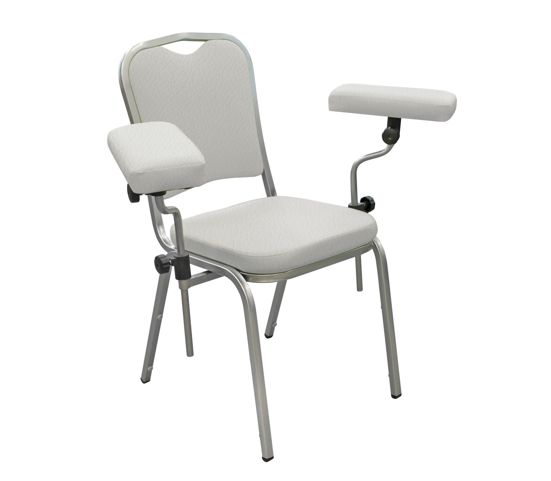 - Эргономичные подлокотники: Подлокотники регулируются по высоте и разлету, обеспечивая индивидуальную подстройку под каждого пациента. Мягкие элементы подлокотников вращаются на 360 градусов, что добавляет гибкости в использовании и позволяет врачу удобно расположить донора. (Поставляется со снятыми подлокотниками для удобства транспортировки и монтажа).