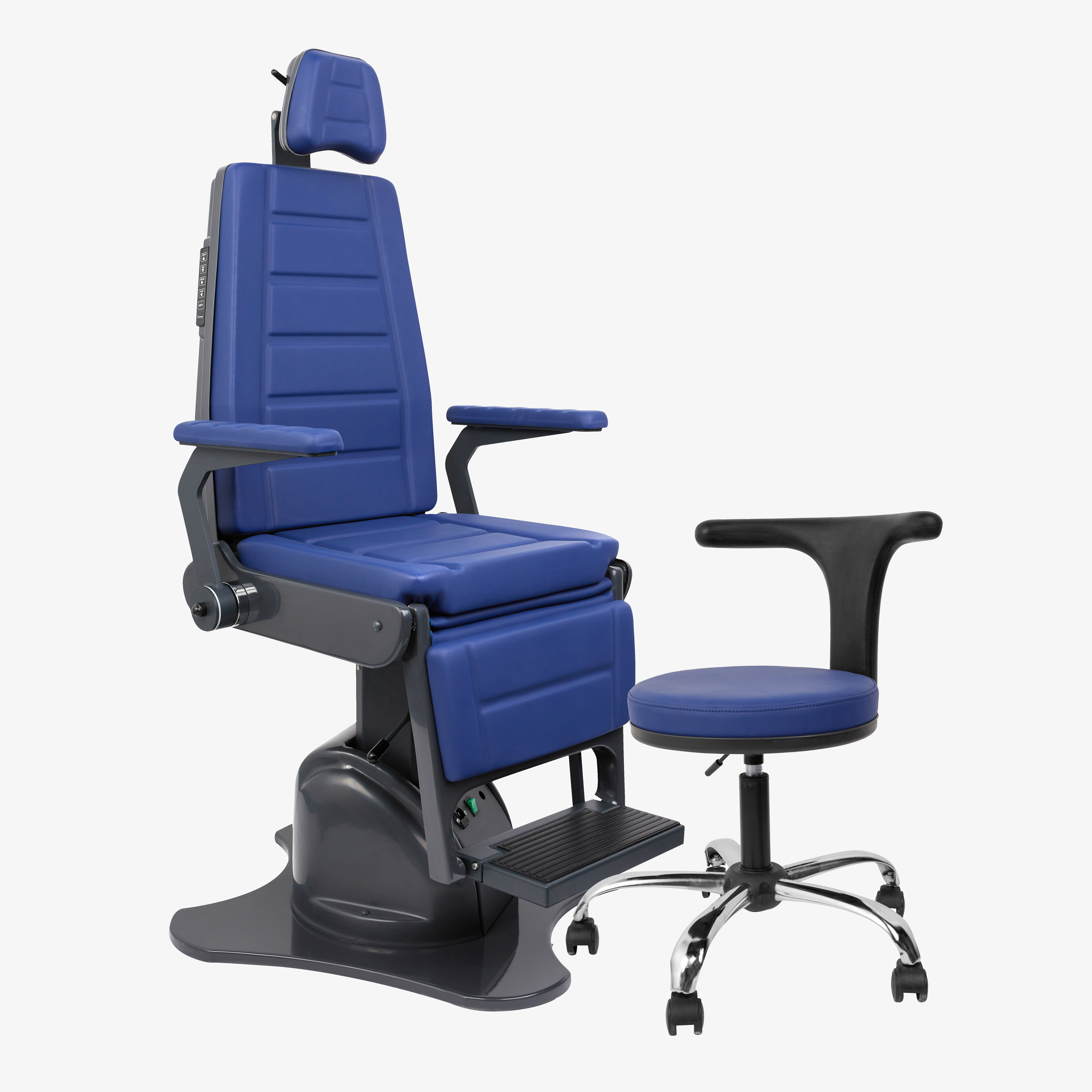 - Гибкость управления: регулировка движений кресла возможна как механически (с помощью рычага), так и электронно-механически (с пульта управления, интегрированного в спинку кресла или ЛОР-установку).