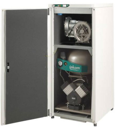 Безмасляные компрессоры EKOM с двумя отсасывающими агрегатами серии DUO 2 — это современное решение для обеспечения стоматологических кабинетов чистым сжатым воздухом, абсолютно свободным от масляных примесей. Эти установки предназначены для эффективного приведения в действие широкого спектра зубоврачебных приборов и устройств, а также для создания необходимого разрежения в отсасывающем агрегате, что критически важно для поддержания гигиенических стандартов и комфорта во время процедур.
