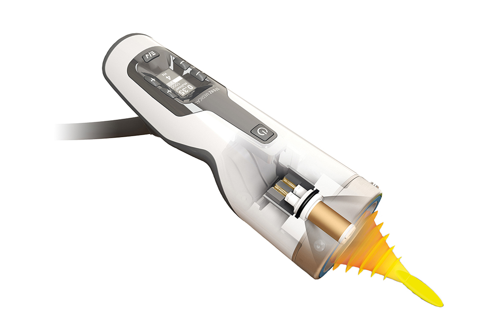 Эргономичный FSW аппликатор для сфокусированных волн (Sepia) также включает встроенное управление, новый дизайн, адаптированный под анатомию кисти, встроенный дисплей параметров, счётчик ударных импульсов и сменную электромагнитную катушку для быстрой замены при обслуживании.