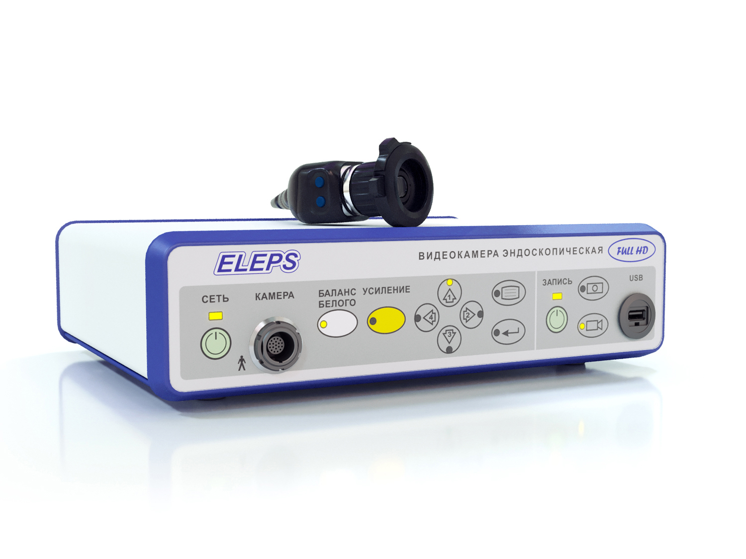 Цифровая видеокамера ELEPS – это современное решение для эндоскопических исследований, обеспечивающее безупречное качество изображения. Разработанная для преобразования оптического сигнала с эндоскопа в полноценный телевизионный сигнал цветного изображения формата Full HD 1080p, она позволяет получать детализированные видеофайлы и снимки экрана, сохраняя их на USB-Flash накопитель, подключенный к встроенному устройству записи.