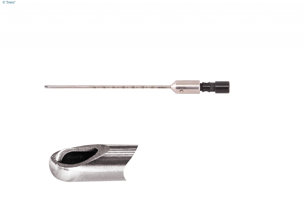 Этот инструмент изготовлен из высококачественной нержавеющей стали, что обеспечивает его долговечность и устойчивость к коррозии. Насадка имеет интегрированный канал для отсоса жидкости и надежное запорное устройство, что гарантирует безопасность и эффективность во время процедур.