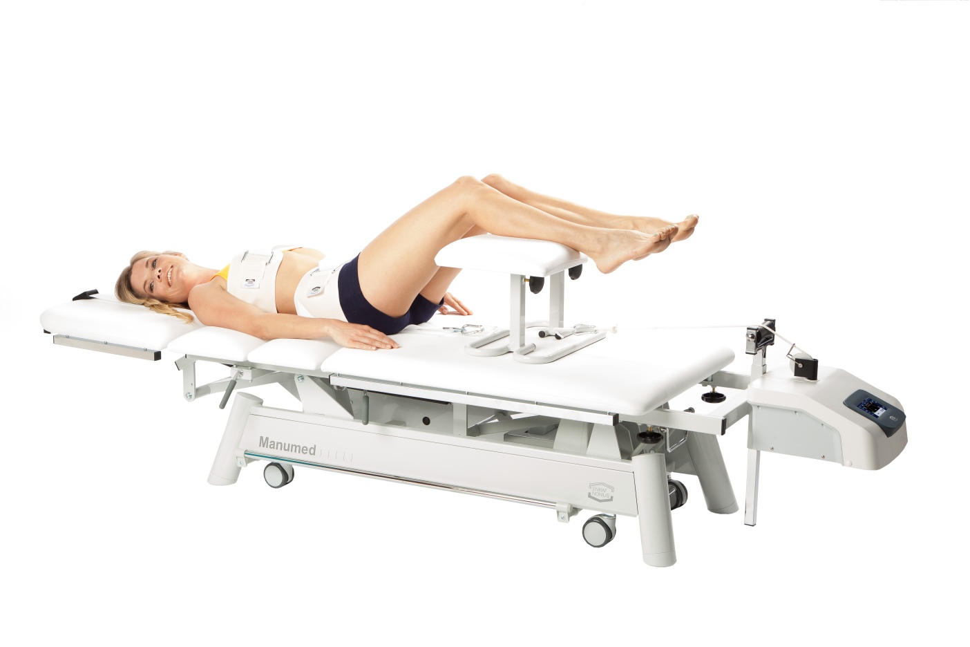 Для оптимизации процедур сухого горизонтального вытяжения шейного и поясничного отделов позвоночника рекомендуется использование специализированных столов серии Manumed Special Traction. Эти столы оснащены подвижной ножной секцией и разработаны для надежной фиксации пациента. Высота кушеток может регулироваться с помощью электро- или гидропривода. Доступны также модели с фиксированной высотой, мобильные рамы и крепления для шведской стенки, предназначенные для вертикального шейного вытяжения.
