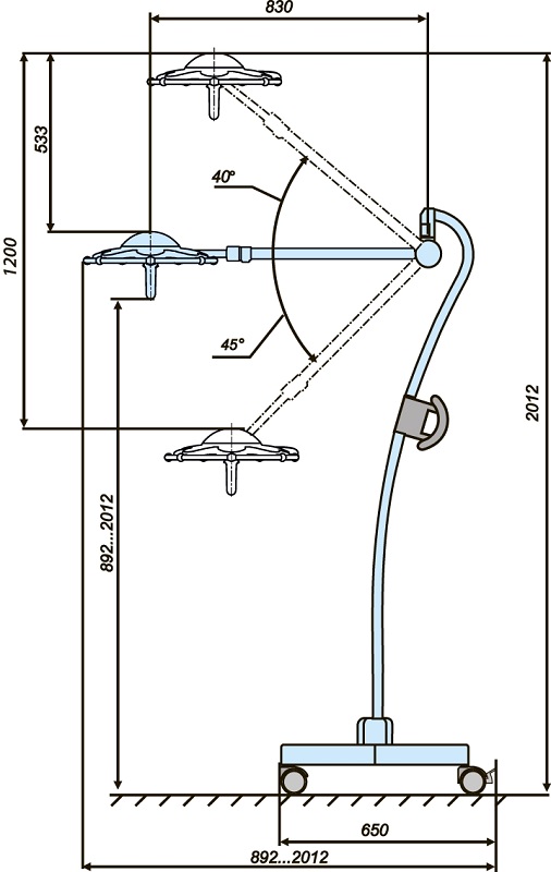 - Перемещение блоков освещения по высоте: 1150 мм