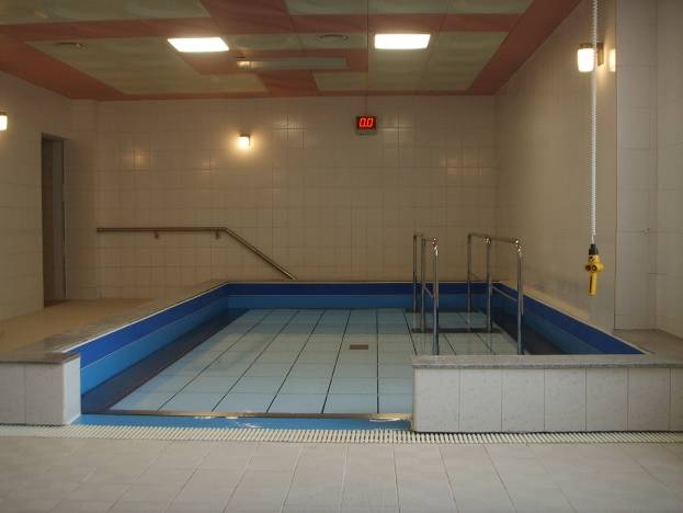 Высота дна регулируется от технологического минимума (обычно 30-40 см от дна бассейна) до максимального уровня (поверхность воды). Верхнее положение регулируемого дна позволяет легко перемещать пациентов на инвалидных колясках или каталках. Регулируемое дно спроектировано для номинальной нагрузки 200 кг/м2. По желанию заказчика, реабилитационные бассейны могут быть укомплектованы интегрированными подъемниками, «беговыми дорожками», велоэргометрами, специализированными креслами для упражнений под водой, а также широким спектром аксессуаров для занятий.