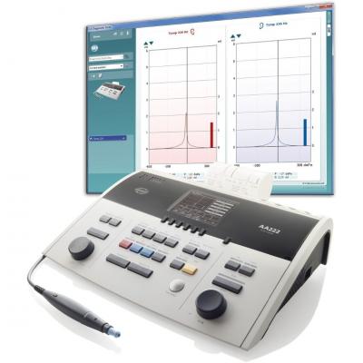 Аудиометр-импедансометр АА 222 позволяет проводить полный спектр аудиологических тестов, включая аудиометрию по воздушному и костному звукопроведению, а также опциональную аудиометрию в свободном звуковом поле и речевую аудиометрию. Он поддерживает выполнение тестов SISI (ИМПИ), Stenger, ABLB, а также ручной и автоматический режимы съема аудиограммы.
