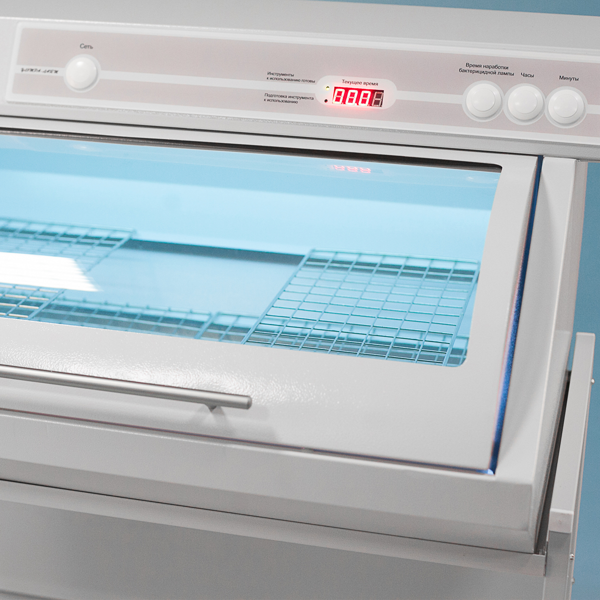 Бактерицидная камера «КБ-Я-ФП Ультралайт» — это надежное решение для поддержания стерильности медицинских инструментов после дезинфекции, предотвращая их повторное заражение. С помощью ультрафиолетового излучения, безопасно удерживаемого внутри камеры, инструменты сохраняют свою чистоту до 7 суток.