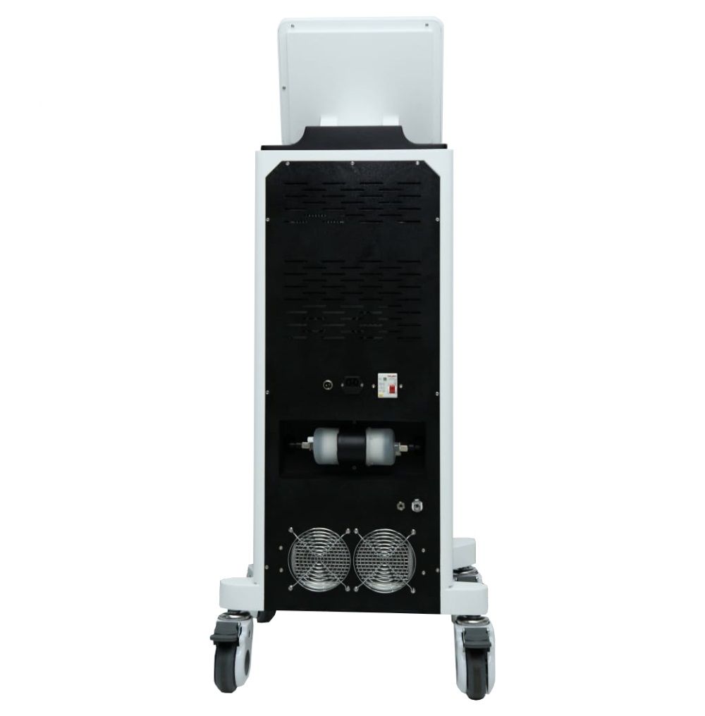 - Стильный, продуманный корпус с колесиками и ручками облегчает перемещение аппарата в клинике.