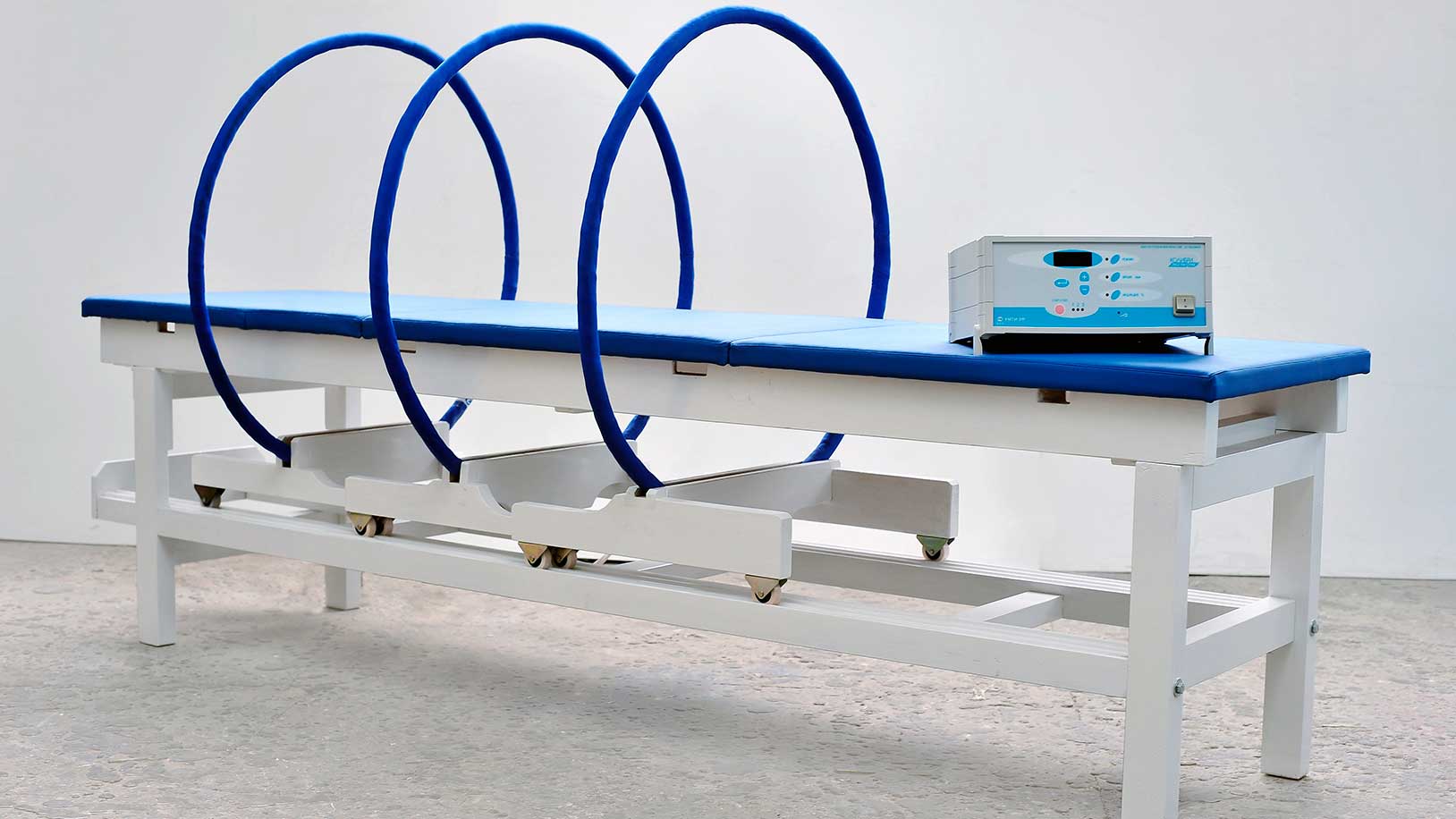 Уникальная конструкция «Колибри Эксперт» позволяет врачам оперативно изменять конфигурацию трех соленоидов, создавая либо вращающееся поле («призма»), либо бегущее импульсное магнитное поле («цилиндр»), что обеспечивает возможность общего воздействия на весь организм или концентрацию максимальной индукции на определенных областях тела. В комплект поставки входит специализированная кушетка для удобства пациентов.